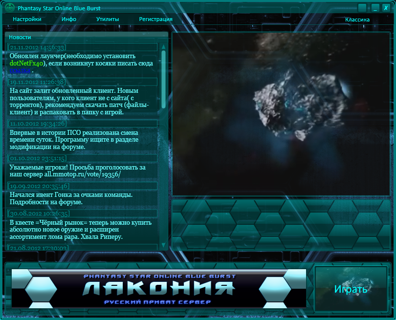 Сверху меню со всеми кнопками, сервер выбирается в настройках, нужную экзешку для ОС он сам выбирает. Справа сверху указан текущий сервер(Классика, Хардкор или Baracronus)